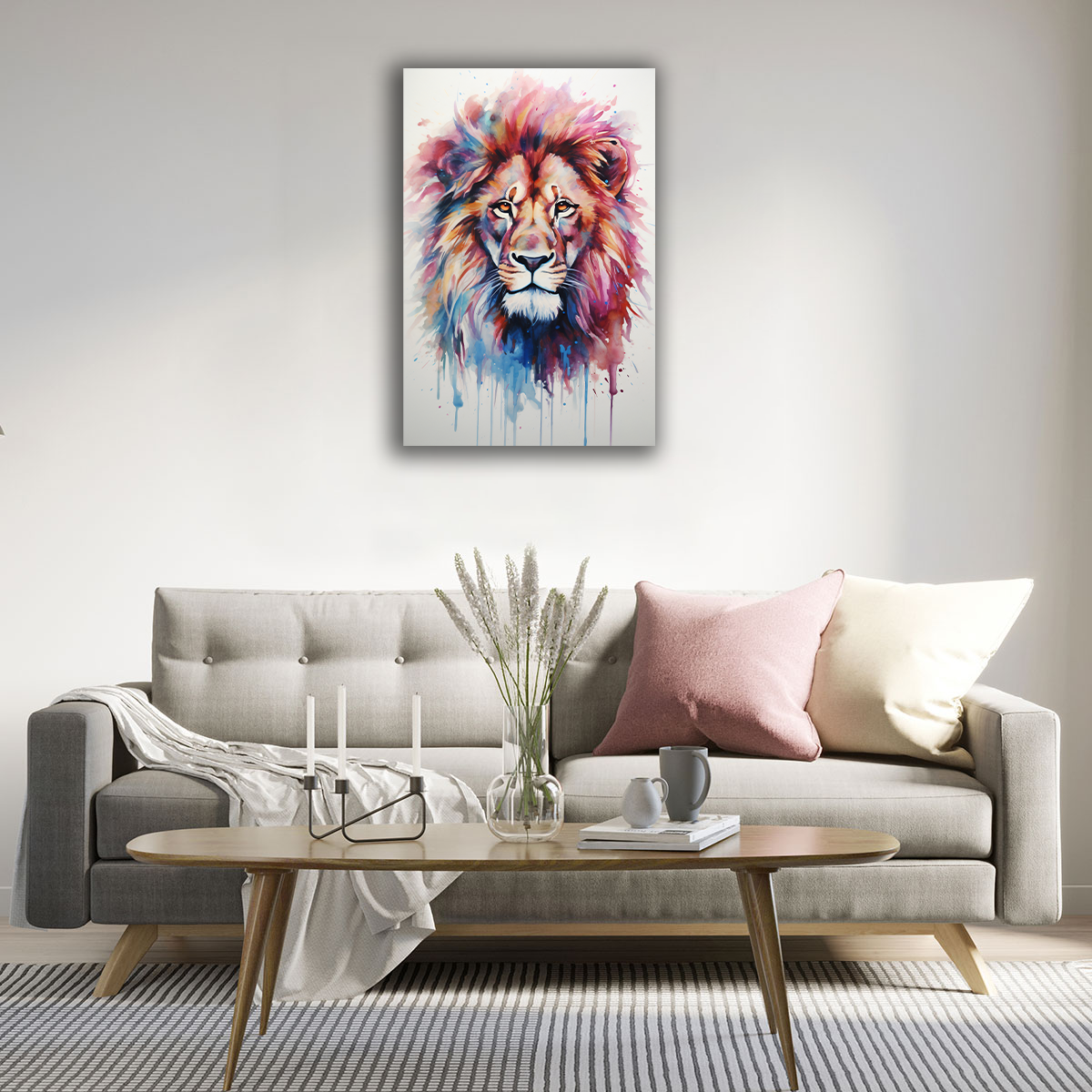 If you're captivated by the majestic beauty of wildlife portrayed through art or you appreciate the mesmerizing allure of watercolor paintings, our WallLumi Canvas titled 'Lion in Watercolor' is a captivating choice for your home decor. This striking piece showcases a headshot of a lion in a captivating watercolor style, with the paint skillfully dripping down at the base, adding an artistic touch and depth to the portrayal.